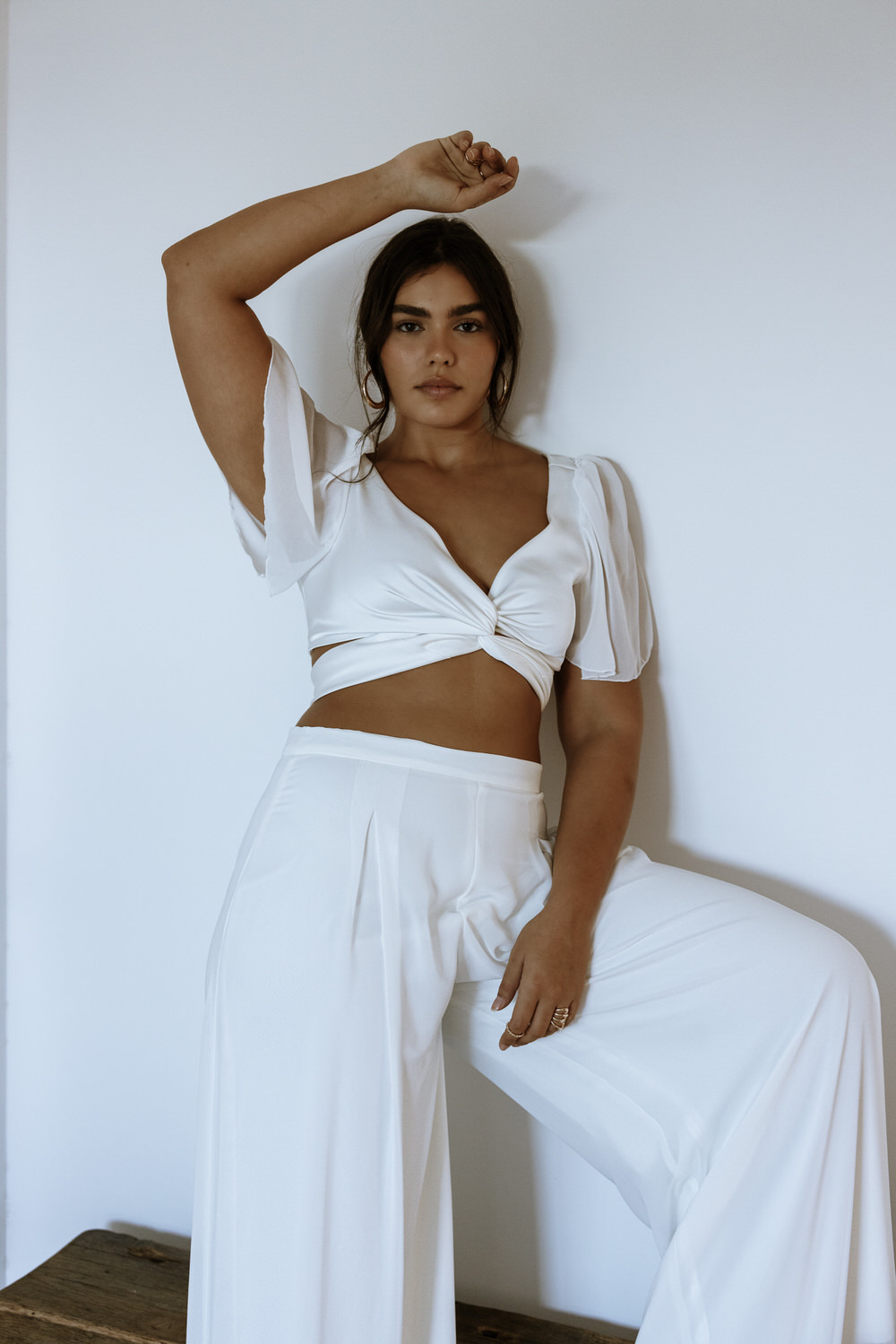 מכנס שיפון עשיר בגזרה גבוהה שנשפך על הגוף בצורה מחמיאה. בול לריקודים.
