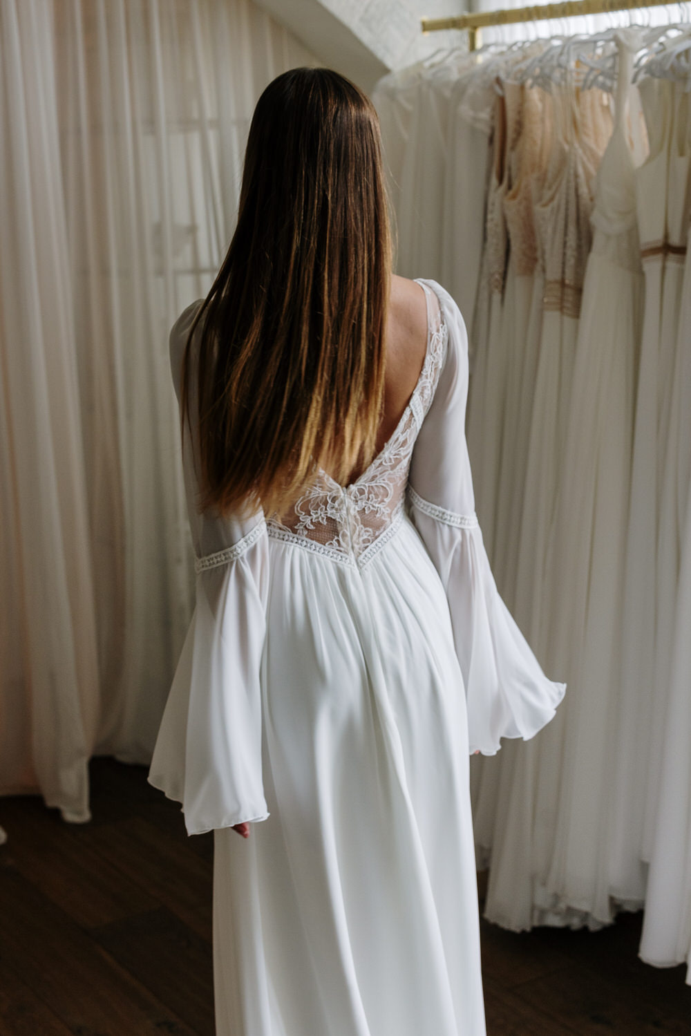 מותן בזוית מחמיאה בטירוף, שרוולים ארוכים מתנפנפים בסגנון בוהו שיק עדין ותחרה מדויקת.
